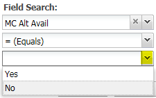 The Field Search filter is an option available in most data sets. The fields available to search vary by data set. The operators also vary by field.
